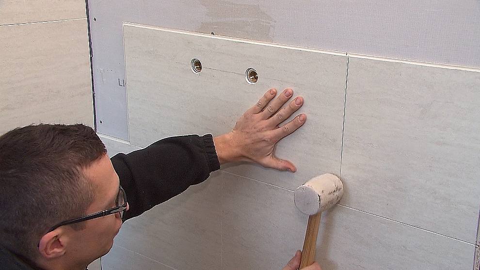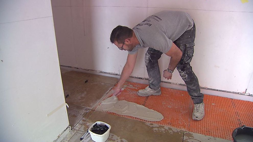 Badkamer Bouwen 8 Roger - Ep. 8 - Waterdichte Wanden - In deze reeks zien we hoe je een badkamer opbouwt, van de basis tot het eindresultaat. De wanden rond de douche en de vloer verven we niet, maar werken we af met een waterdicht materiaal. Een waterdichte afwerking is natuurlijk belangrijk om vochtproblemen in de toekomst te vermijden.